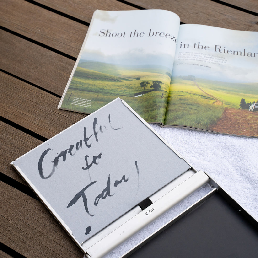 Paint on the surface with water and watch your creation come to life. As the water slowly evaporates your art will magically disappear, leaving you with a clean slate and a clear mind.
